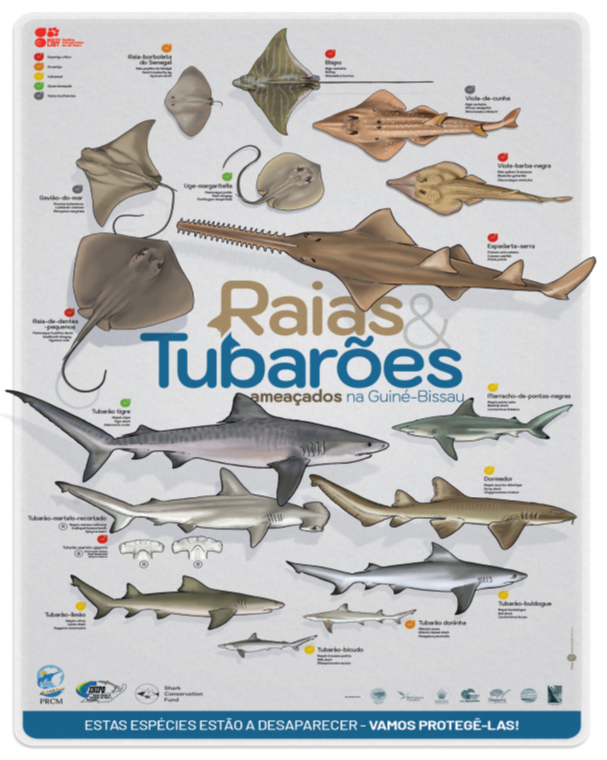 À l’issue des présentations, les participants ont reçu un certificat de formation, accompagné d’un ensemble de supports pédagogiques, dont un poster illustrant les principales espèces de raies et requins menacées en Guinée-Bissau.