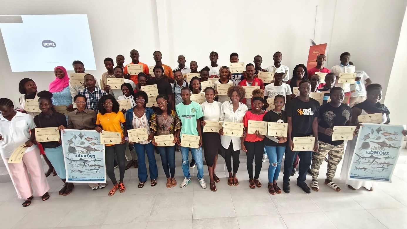 À l’issue des présentations, les participants ont reçu un certificat de formation, accompagné d’un ensemble de supports pédagogiques, dont un poster illustrant les principales espèces de raies et requins menacées en Guinée-Bissau.